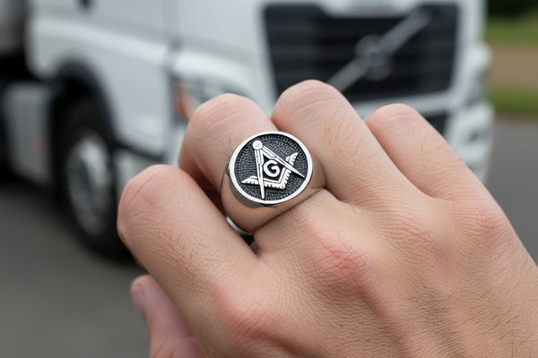 The Round "Masonic" Ring carries Timeless Swagger in the World of Freemasonry. Modern Members Strut their Stuff, Proudly Flaunting this Stylish Symbol of their Allegiance. The Ultimate Pick for Men, Women, or Anyone who Digs Masonic Vibes. Crafted from 316L Stainless Steel with a Inlaid Black Enameled Background, it's Solid, Sturdy, and Screams Sophistication. With a 21mm round top, it’s Bold, it’s Bling, and sizes are Ready to Suit Everyone.