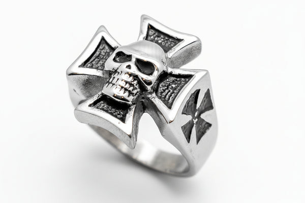 The Iconic Stainless Steel Iron Cross Ring Sports a Bold Skull on the Top, with a smaller Iron Cross on each side for Maximum Impact. Its Interior is Smooth and Comfortable, hugging your Finger like it was Custom-Made. Not too Big, making it Perfect for Everyday Wear, and Available in sizes for Both Men and Women.