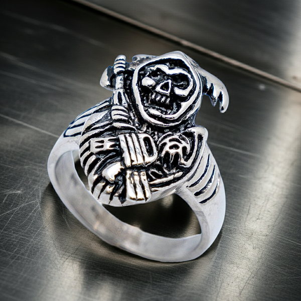 Heavy Metal Jewelry Men's Grim Reaper Skull Stainless Steel Ring SR186
