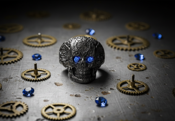 This Tribal Tattoo Skull Ring is the Fearless Fashion Sidekick you didn’t Know you Needed, Flaunting Hypnotic Crystal Blue Eyes that Stare into your Soul from IPT-Plated Black Stainless Steel. Tough as Nails and Twice as Stylish, it’s Perfectly sized for Women and just the Right Amount of Swagger for a Men’s Pinky Ring.
