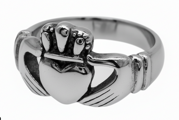 The Claddagh’s Iconic Design Features Two Hands holding a Heart Crowned with Regal Elegance. The Heart Symbolizes Love, the Hands Represent Friendship, and the Crown Signifies Loyalty. Crafted from 316L Stainless Steel with Black Accents, it is Ideal for Everyday wear. Perfect for Kings, Queens, and Everyone in between, it also makes an Excellent Choice for Matching Sets and Wedding Bands Too! Sizes 5 - 14