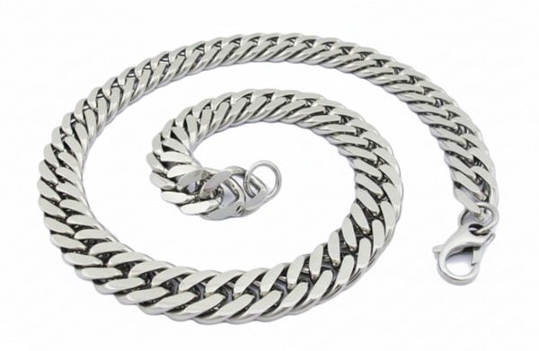 The closely spaced, squared-off links of this Men's Necklace provide a refined and smooth appearance. Crafted from 316L Stainless Steel, this Curb Necklace is exceptionally durable. Weighing over 265 grams, with a width of 15mm and a thickness of 6mm it is far from being a delicate piece. It also features a large, elegant lobster claw clasp.